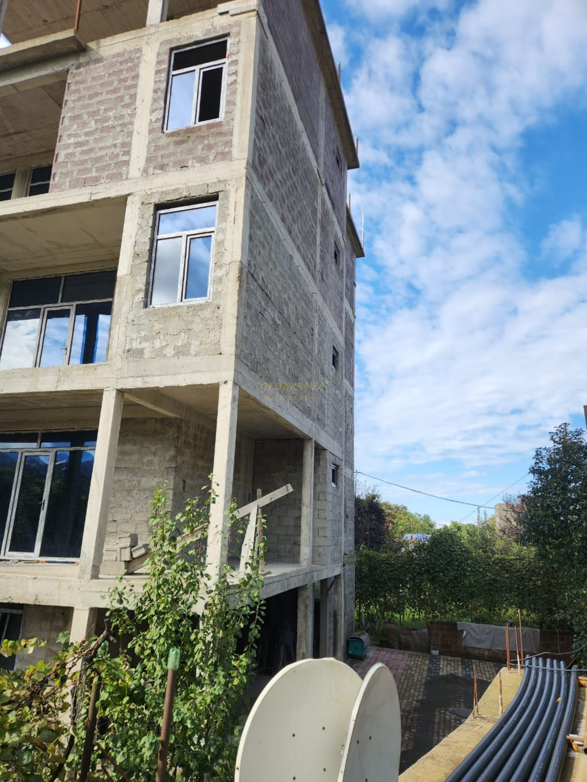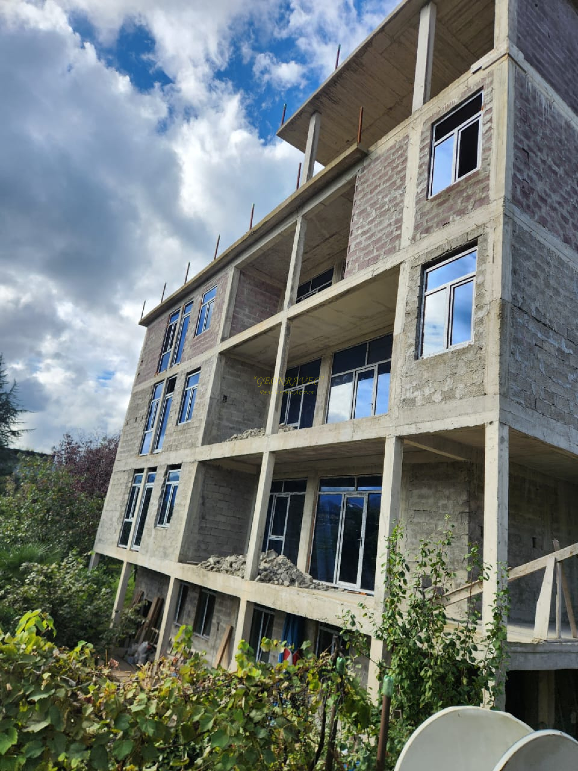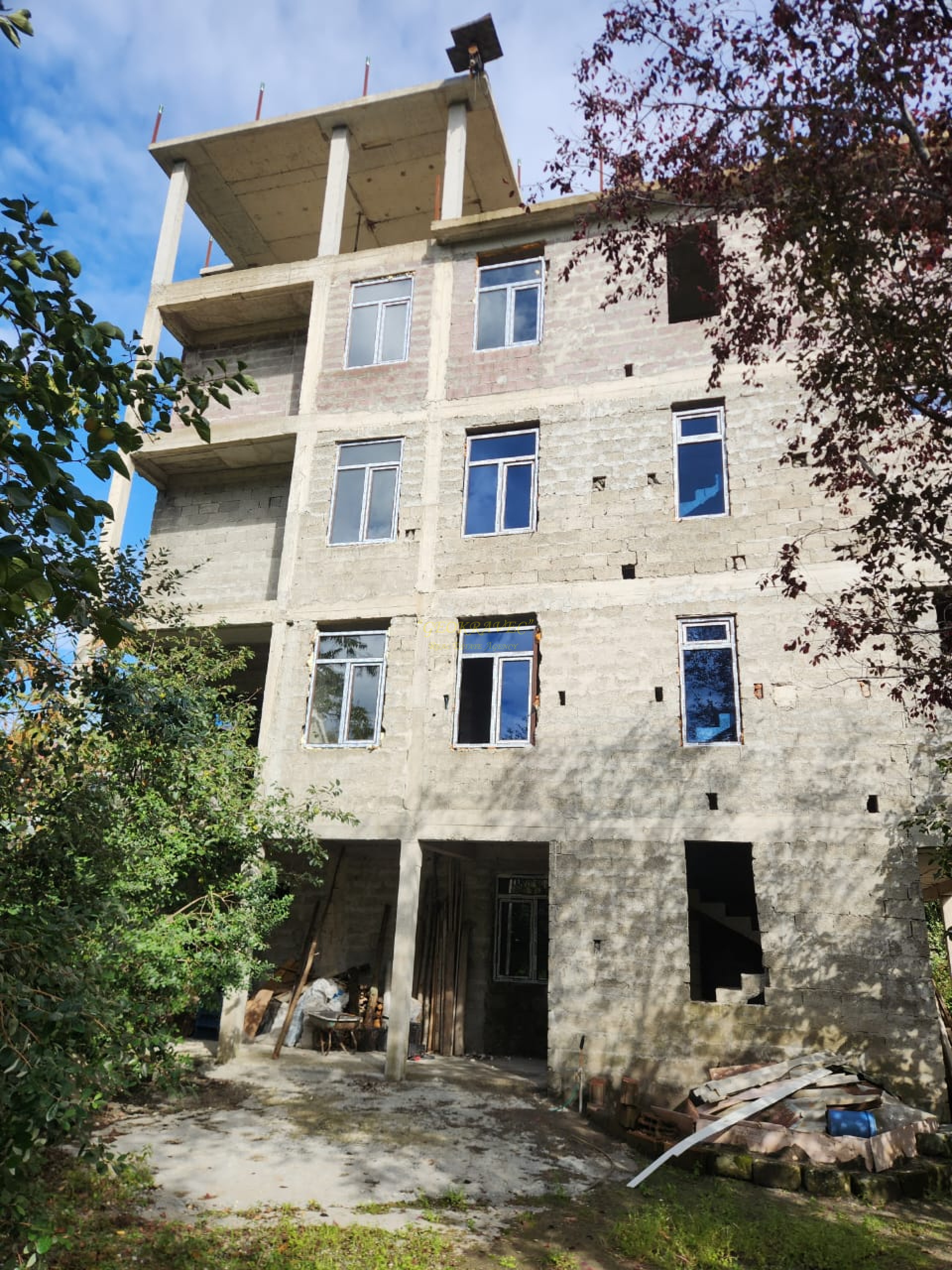 От побережья черного моря 1,5 км и от берега реки Чаквисцкали в 100 метрах продается пять этажный дом. Дом построен на 3319 м2 участке. Площадь дома 1000 м2. Строительство завершено. Продается в состоянии черного каркаса. Есть все коммуникации. Выгодно как для квартир, так и для гостиницы. На участке возможно построить дополнительные постройки.