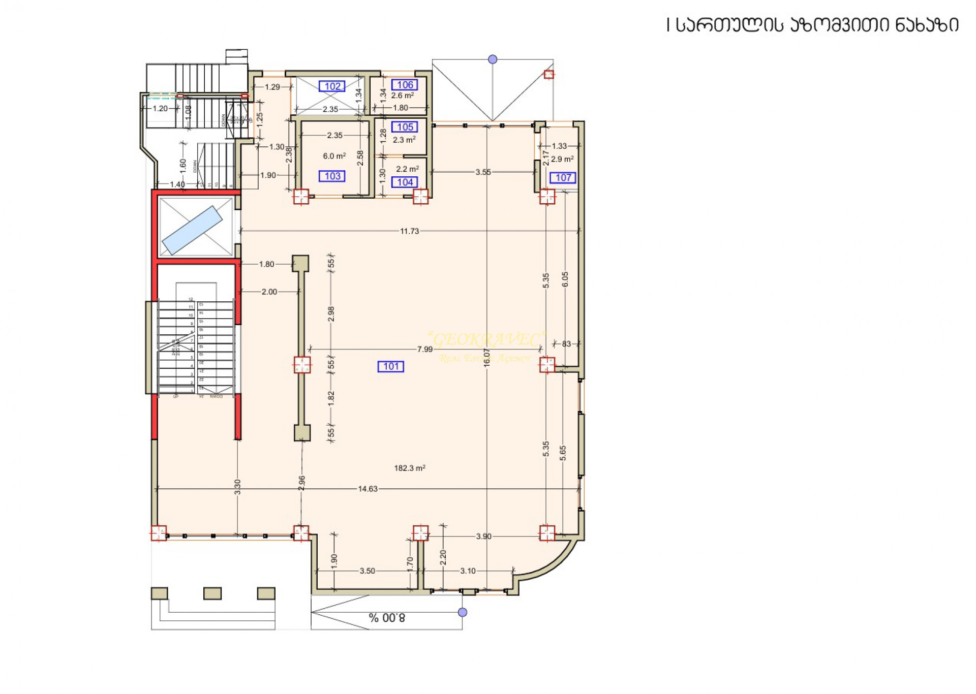შენობის საერთო ფართობი შეადგენს 1 418 მ²-ს. ის შეესაბამება ევროპულ სტანდარტებს, გამოირჩევა უნიკალური დაგეგმარებით და აქვს გაფართოების პერსპექტივა.სართულიანობა: 4 სართული + მიწისქვეშა სართული და ტერასა. თითოეულ სართულზე განხორციელებულია ფუნქციური ზონირება. შენობა განკუთვნილია ქირურგიული სტაციონარისთვის, სართულების სხვადასხვა სამედიცინო დაწესებულებისთვის გაქირავების შესაძლებლობით. მიწისქვეშა სართული, რომლის ფართობია 200 მ², გამოიყენება როგორც დიაგნოსტიკური ცენტრი. იგი უზრუნველყოფს უსაფრთხოებას რადიაციული დაცვით.პირველი სართულები წარმოდგენილია პოლიკლინიკით, ლაბორატორიით და მიღების ზონით.მეორე სართული ქირავდება აუტიზმის მქონე ბავშვთა ცენტრისთვის.მესამე სართულზე განთავსებულია ინტენსიური თერაპიის პალატები და რეანიმაციის ბლოკი (3 პალატა + 1 იზოლირებული პალატა + რეანიმაციის ბლოკი).მეოთხე სართულს აქვს ქირურგიული ბლოკი და წვდომა ტერასაზე (3 ორადგილიანი პალატა + საოპერაციო). სამედიცინო გაზები: აღჭურვილია CO₂-ით, ჟანგბადით თანამედროვე ვენტილაციის სისტემა: • საოპერაციო: ჰაერის 15-ჯერადი გაცვლა • ინტენსიური თერაპიის განყოფილება: ჰაერის 10-ჯერადი გაცვლა ცალკეული საინჟინრო ინფრასტრუქტურა: • დამოუკიდებელი საკანალიზაციო სისტემა • წყლის მიწოდება ხანძარსაწინააღმდეგო რეზერვუარით (80 მმ) შეესაბამება ევროპულ და ქართულ სამედიცინო ნორმებს. მოქმედი ლიფტი. ექსპლუატაციისთვის მზადყოფნა შენობა მთლიანად დასრულებულია და მზად არის გამოყენებისთვის. ყველა სისტემა შეესაბამება საერთაშორისო და ადგილობრივ ნორმებს, რაც იძლევა საქმიანობის დაუყოვნებლივ დაწყების საშუალებას. გაფართოების შესაძლებლობა არსებობს ნებართვა 8 სართულამდე დაშენებისთვის. ეს ქმნის შესაძლებლობას ფუნქციონალის გაზრდისა და მომსახურების მასშტაბირებისათვის მომავალში.