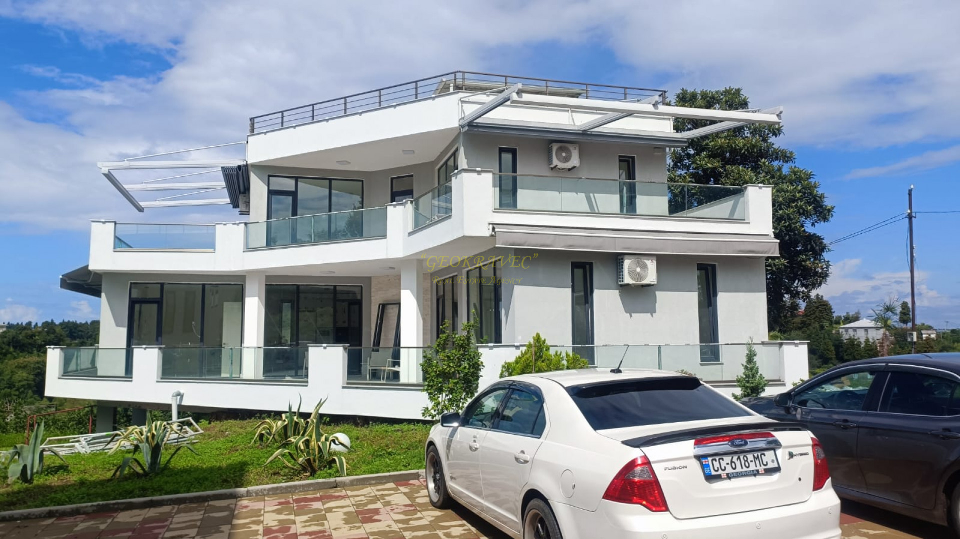 В Чакви продается недавно построенная вилла. Земельный участок площадью 1354 кв.м. несельскохозяйственного назначения. На участке растут мандарины. Общая площадь дома 417 м2. Сделан высококачественный ремонт современным дизайном. В доме четыре спальни, три ванные комнаты, гостевая комната, кухня, балконы и терраса на последнем этаже. Из дома открывается прекрасный панорамный вид на море и горы. Место тихое и экологический чистое. Дом оборудован всей необходимой мягкой мебелью и техникой. Есть открытый бассейн. До моря 5 км, до города Батуми 15 км. Это лучшее место как для проживания, так для коммерческой деятельности. Продается по адекватной цене.