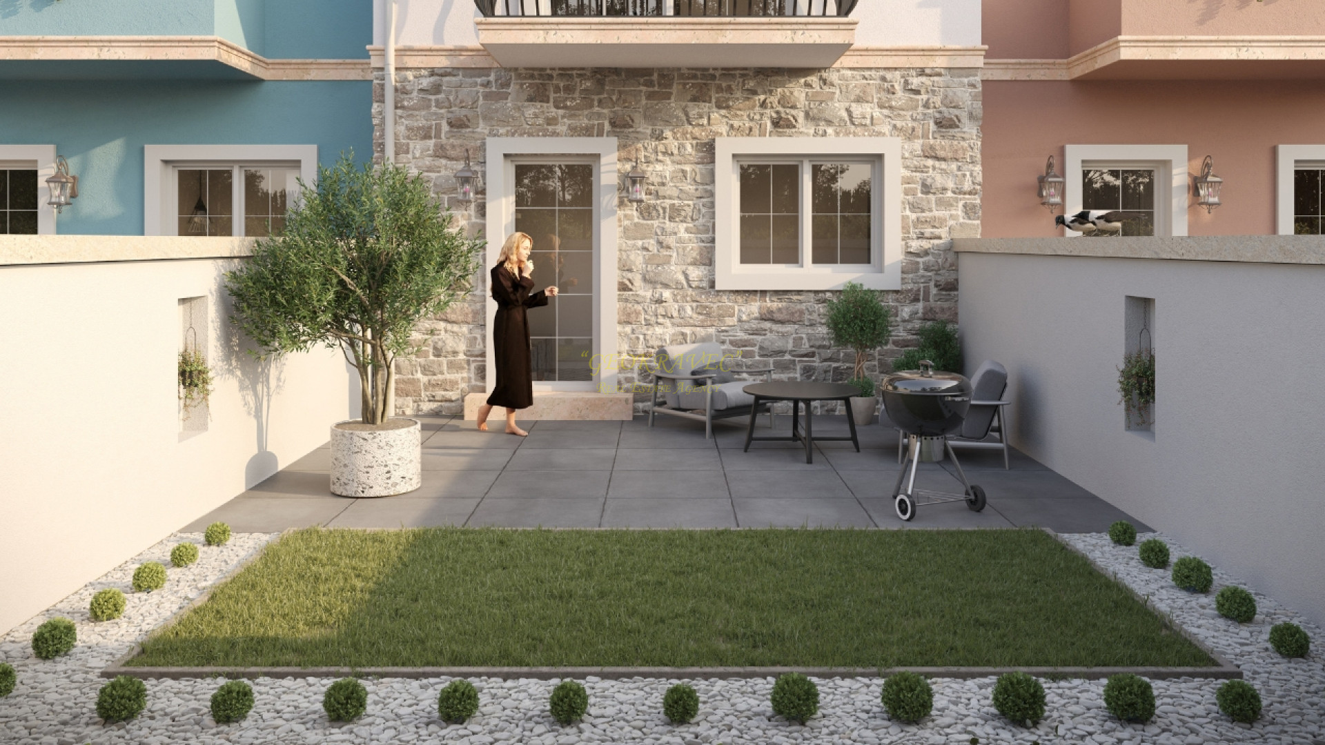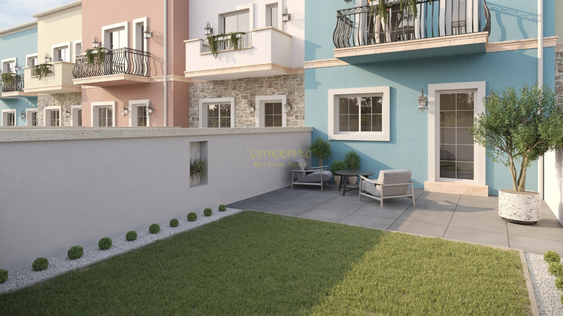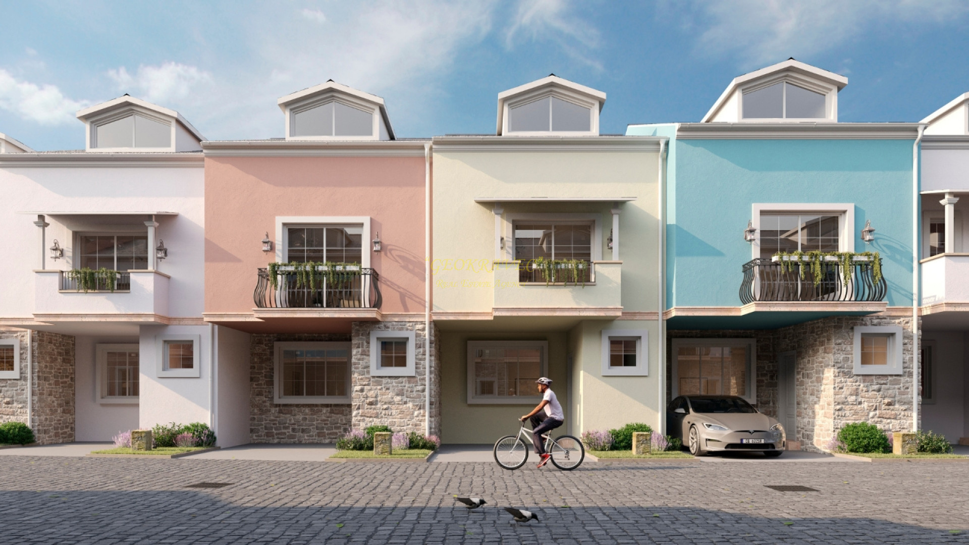 - Каждый дом имеет собственный сад и парковку. Экстерьер проекта вдохновлен средиземноморским стилем. Интерьер выполнен в скандинавском стиле, где приоритетами являются комфорт, простота и функциональность.