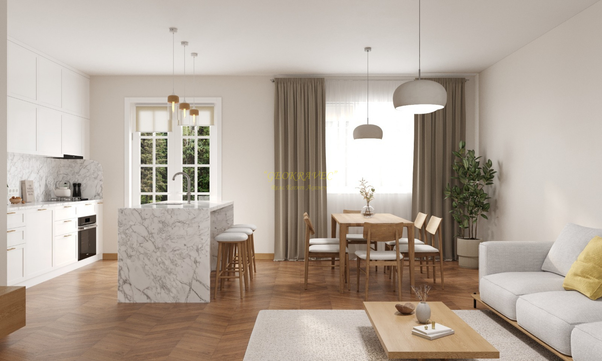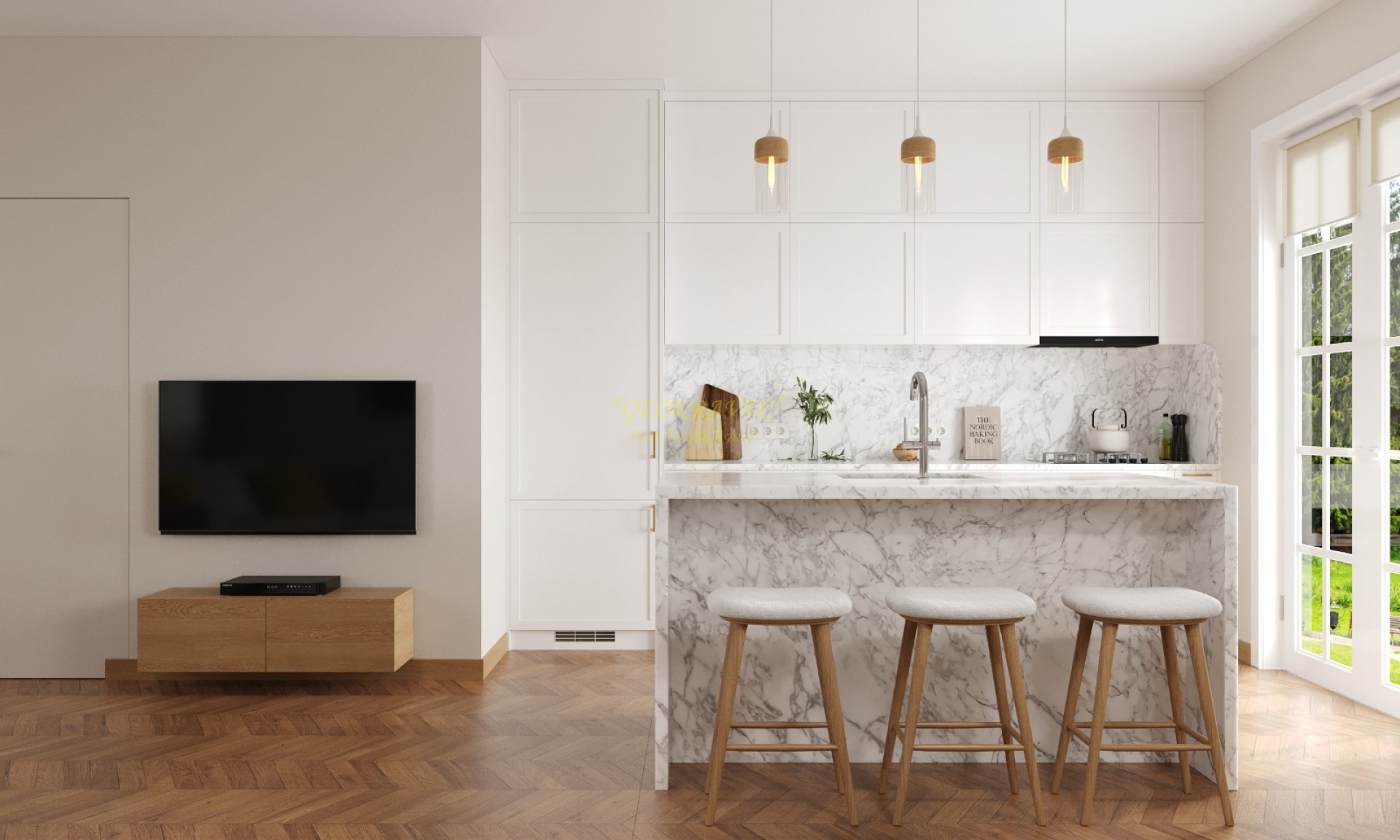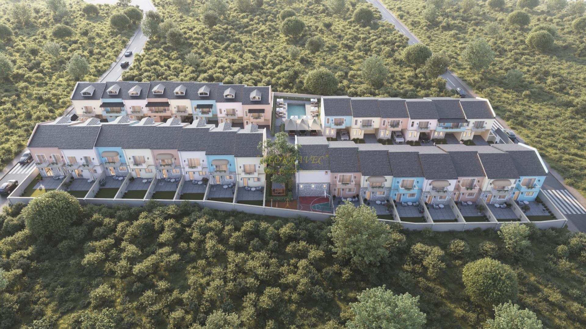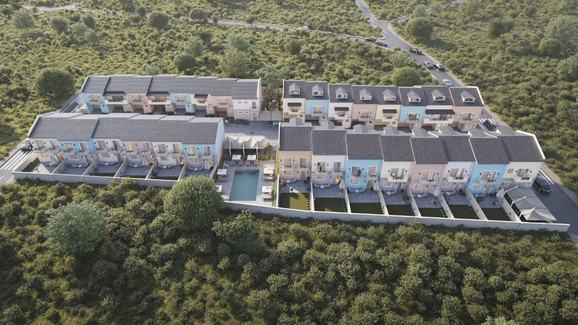 - Каждый дом имеет собственный сад и парковку. Экстерьер проекта вдохновлен средиземноморским стилем. Интерьер выполнен в скандинавском стиле, где приоритетами являются комфорт, простота и функциональность.